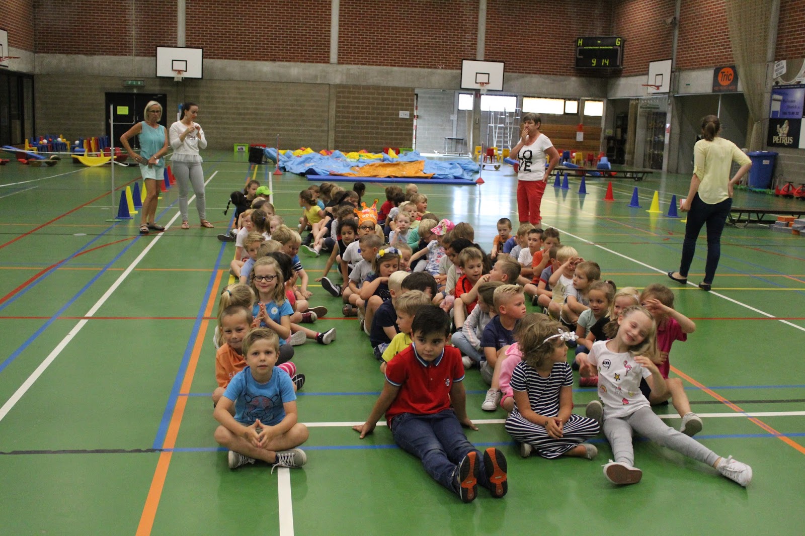 Vanmorgen gingen we naar de sporthal om te sporten : fietsen, klimmen, klauteren, op het springkasteel ravotten, bouwen, het was superleuk !