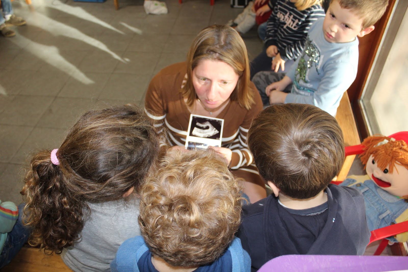 De kleuters brachten hun geboortekaartje en een babyfoto mee, die bespraken we dan tijdens een taalactiviteit.
