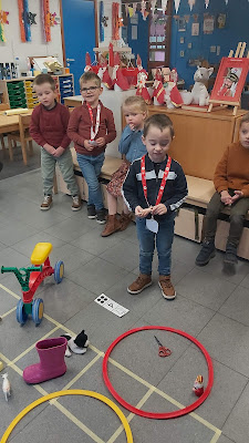 We maakten kennis met enkele klanken in woorden: 'aa' van Sinterklaas en 'ie' van Piet. Voorwerpen moesten gesorteerd worden volgens die klank in het woord.